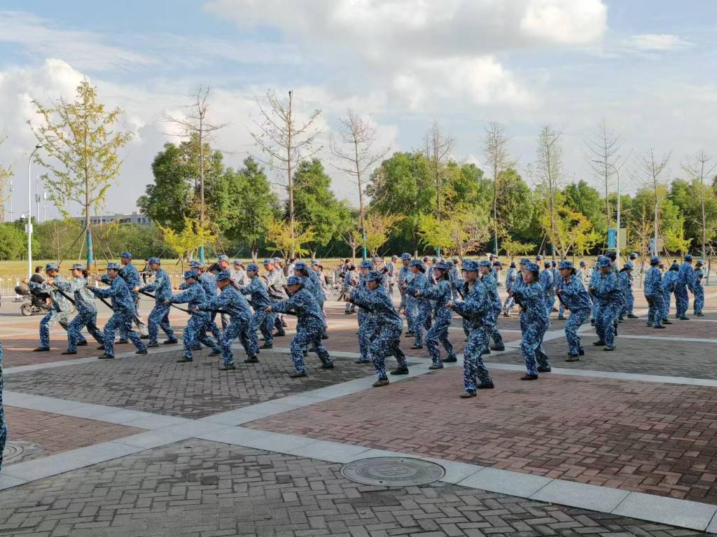 一阵秋风爽,一抹桂花香。不知不觉已到了军训第十一天。伴着微风和淡淡花香,同学们开始一天的军训生活。早上7:05同学们准时集合,去往军训地点。