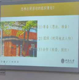 班长吴柳萱就班长的处事方法、班级的凝聚力培养、活动的组织策划三个方面同大家进行了分享。对于班长的处事方法方面,吴柳萱明确了班长需要富有技巧,对同学要亲近友好,多多表扬;对老师要充满感恩之心,节日到来之际,要代表班级表达祝福之情;对班导师、任课老师、辅导员传达的信息要及时、准时做到上传下达,上交文件重命名,减少汇总工作量并与班导师、辅导员及时沟通、充分交流;班级凝聚力方面,吴柳萱提到可多举行形式多样的班级活动同时就活动组织策划提出建设性意见。