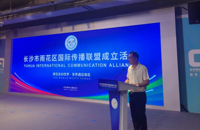 6月10日上午,在第四届中非经贸博览会即将举办之际,长沙市雨花区国际传播联盟在中非经贸博览会常设展馆正式成立。联盟成立活动上,长沙市委宣传部副部长、市政府新闻办主任杨溢与雨花区委副书记、统战部部长欧阳伟沙为长沙市雨花区国际传播联盟揭牌。yl9193永利YL集团应邀作为首批联盟单位参加活动,标志着学院发挥国际传播优势服务地方实践发展再次迈出坚实一步。学院副院长仲文明和MTI教育中心执行主任郭薇代表学院参与成立仪式。