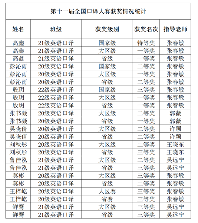 我院学子喜获第十一届全国口译大赛特等奖