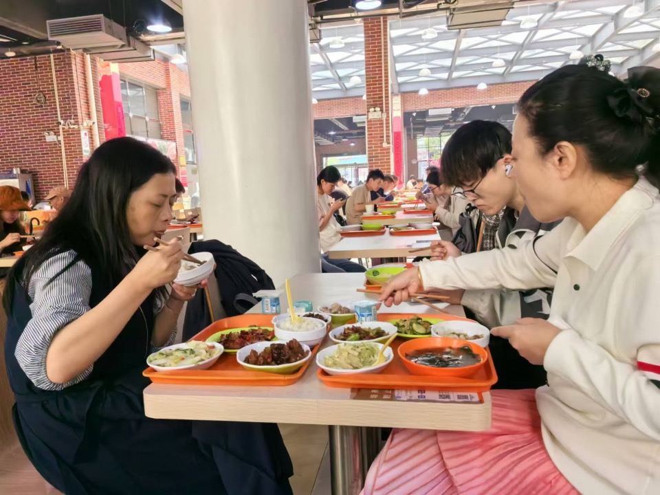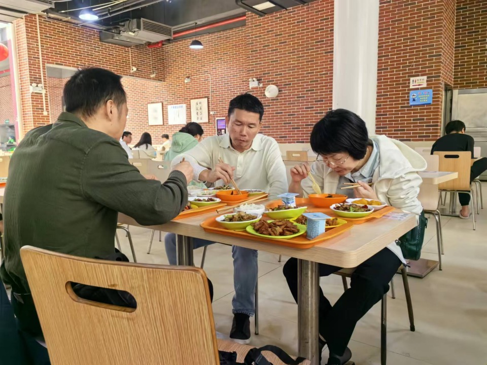 正午时分,校友们前往学生六食堂,这里是他们学生时代的美好回忆之一。六食堂紧邻大礼堂,校友们在此享用午餐,探寻学生时代的味道和记忆。食堂内,熟悉的菜肴和热闹的氛围让校友们穿越到了那个充满活力的青年时代,仿佛听到从食堂二楼舞厅传来的音乐声。这穿越时间长河的旋律,触动了校友们的心灵,唤起了他们对校园生活的美好回忆和对青春时光的怀念。那一刻,他们觉得自己从未真正离开过这个充满记忆的地方。