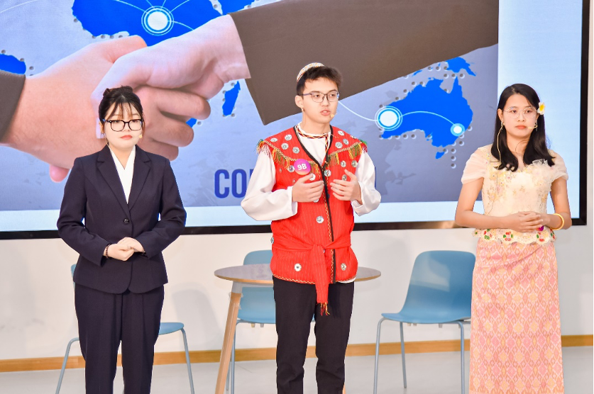 2024121日,第七届“外教社杯”全国高校学生跨文化能力大赛全国决赛、总决赛在上海外国语大学圆满落幕。在我院潘紫霓、李丽君和国际教育学院刘登峰三位老师的指导下,我校国际学生李浩宇(KURBANAZAROV MUHAMMET)、杨堬嫆(YEOH YEE YONG)和黄丽星(KUCH RACHHE),以流畅的汉语表达能力、清晰的叙事能力和严谨的逻辑思维,给评委专家和现场观众留下了深刻印象,荣获全国总决赛国际学生组一等奖。