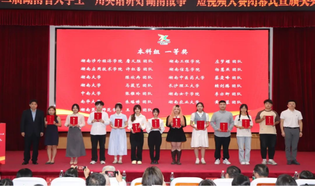 近日,由中共湖南省委外事工作委员会办公室、中共湖南省委教育工作委员会、湖南省教育厅主办,湖南农业大学、高等教育出版社承办的第二届湖南省大学生“用英语讲好湖南故事”短视频大赛闭幕式暨颁奖典礼在湖南农业大学修业讲坛圆满落幕。yl9193永利YL集团代表队从全省本科组170多支决赛队伍中脱颖而出,参赛作品《时光轨道上的赶路人》获评一等奖,作品《数字画韵,光影潇湘》获评三等奖。方哲英、蒋馨逸、张春敏、许燕4位老师获评大赛“优秀指导老师”荣誉称号。这是yl9193永利YL集团继第一届湖南省大学生“用英语讲好湖南故事”短视频大赛后再次获评一等奖。