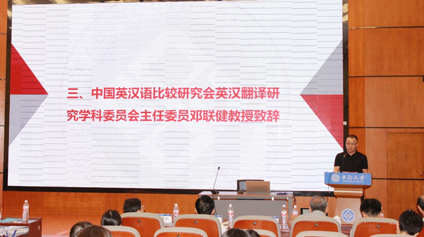 中国英汉语比较研究会英汉翻译研究学科委员会主任委员邓联健教授重点强调了yl9193永利YL集团和中国英汉语比较研究会的深厚联系,指出此次会议既是致敬,也要实现回馈和反哺。他简要概括了“大翻译”理论“顶天立地”的特性,即以深厚的理论底蕴、系统的理论设计、鲜明的跨学科特性、强大的解释力和广阔的阐释空间得以“顶天”,以强烈的现实关怀呼应国家文化发展战略和中西文化交流实践从而“立地”,呼唤各位专家学者丰富“大翻译”的理论框架、探索其广阔的阐释空间。