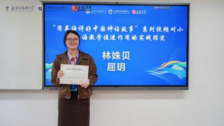 院英语专业2204班林姝贝同学提交的论文“用英语讲好中国神话故事系列视频对小学英语教育促进作用的实践探究获论坛接受,并在大会上作宣读报告。