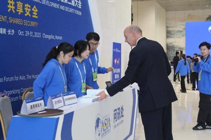 博鳌亚洲论坛全球经济发展与安全论坛第二届大会于20231029日至31日在湖南长沙举行。大会由博鳌亚洲论坛和湖南省人民政府联合主办,由大会组委会和长沙市政府共同承办,共设置30余场活动,来自52个国家和地区的政府官员、国际组织代表、外交使节、专家学者、行业企业代表等2500多位嘉宾参会。我院共选派87名学生参与志愿者工作,他们以积极向上、真诚热情的精神风貌服务大会,赢得了与会嘉宾、组委会的高度肯定。