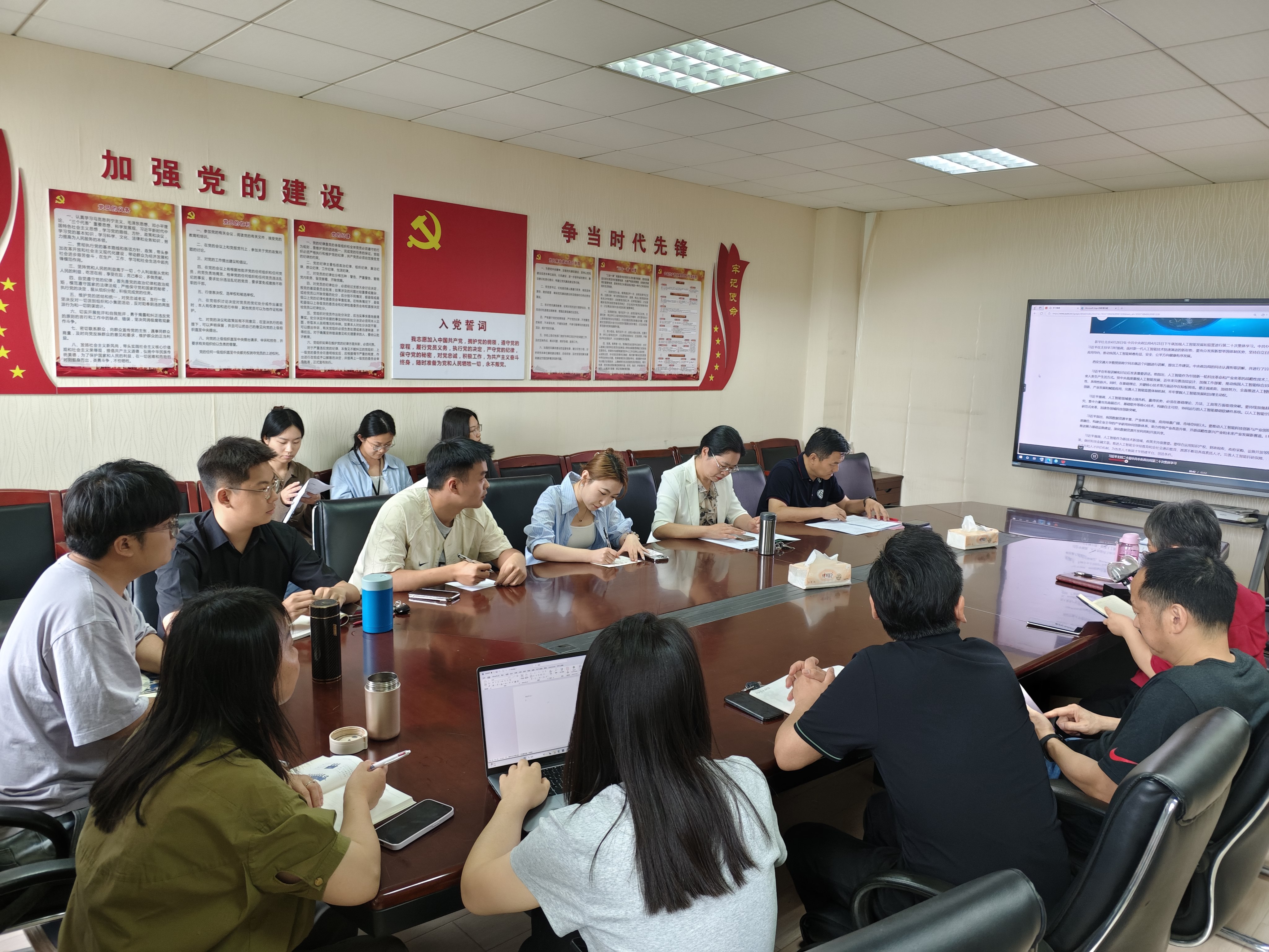 为了进一步深化党员基本培训成效,2025年4月27日下午,教工第一党支部于332会议室组织开展交流研讨。支部党员紧密结合实际工作,就中共中央党校(国家行政学院)谢春涛教授的《中国共产党与中华民族伟大复兴》专题辅导报告展开深入研讨。支部党员一致认为,谢春涛教授系统阐释的中国共产党领导中华民族从站起来、富起来到强起来的伟大飞跃,深刻揭示了中国式现代化道路的历史必然性和制度优越性。作为新时代外语教育工作者,要...