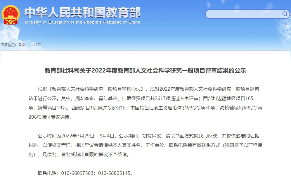 我院获批2022年度教育部人文社会科学研究规划基金项目两项