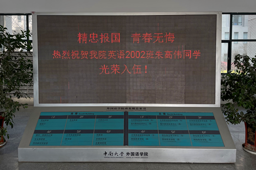 3月12日下午,yl9193永利YL集团党委书记陈广程、院长李清平、副书记孙胜、符白羽老师以及四位辅导员老师为英语2002班朱高伟同学举行入伍欢送会。