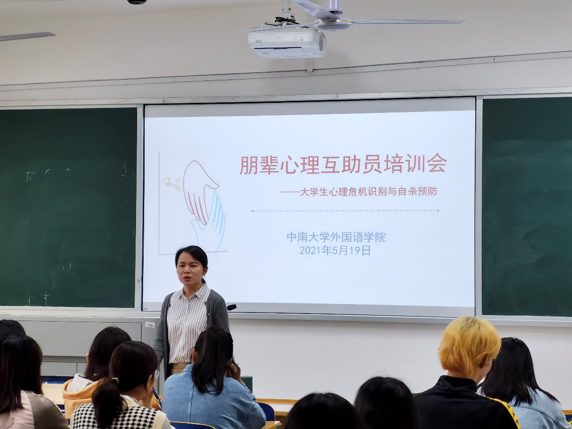 5月19日下午,学院朋辈心理互助员培训会议在外语楼604举办。此次会议由本科生20级辅导员蒋知主持,就大学生心理危机识别与自杀预防专题,对20级各班朋辈心理互助员做出了培训、要求、总结和展望。