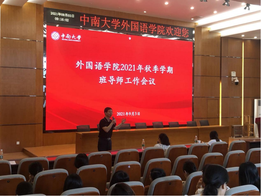 9月3日上午,外语院召开2021年秋季学期班导师工作会议。学院全体班导师、副班导师和年级辅导员参会,会议由孙胜副书记主持。会议首先强调了副班导师的职责,要求副班导师积极参与班级工作,让同学们了解副班导工作,配合班导师工作,班级带到毕业。其次,孙书记汇报了暑期留校学生工作的情况,留校学生工作整体状况良好,学生健康码没有出现红黄码。再次,孙书记通报21届毕业生工作状况,本科生初次就业率达95.58%,7人未就业,...