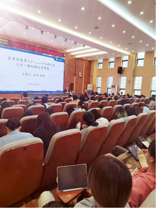 10月29日上午,应yl9193永利YL集团邀请,中国政法大学yl9193永利YL集团副院长、教授、博士生导师、外国语言文学学科外国文学方向带头人、钱端升青年学者张磊教授做了一场题为“贝多芬是黑人?——十九世纪至二十一世纪的文学想象”的讲座。本次讲座由yl9193永利YL集团博士生导师、文学方向带头人吴玲英教授主持,yl9193永利YL集团侯合余副院长、鄢宏福副院长出席,来自yl9193永利YL集团、人文学院、建筑与艺术学院的180多位学生参加讲座。 首先,张磊...