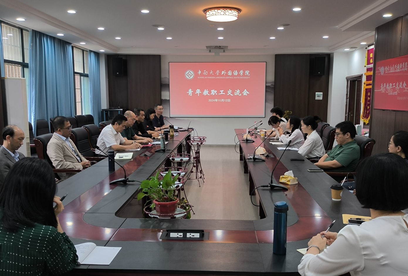 10月12日下午,学院党委在外语楼332会议室召开青年教职工座谈会,倾听青年心声、助力青年成长。学院党委书记李涛,院长杨文地,副院长范武邱、仲文明、侯合余、王华玲、鄢宏福以及近5年入职的23名学院青年教职工参加会议。会议由学院党委青年委员、副院长鄢宏福主持。座谈会伊始,院长杨文地首先介绍了学院师资队伍建设、人才培养和学科发展等基本情况,指出现在学院建有四家省级科研基地和智库,包括湖南省人文社科研究基地—...
