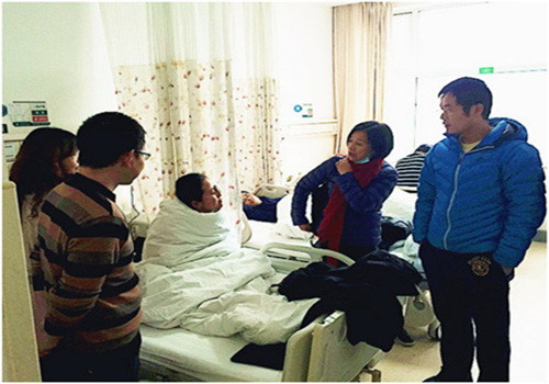 11月24日下午,yl9193永利YL集团党委许林勇副书记、英语1301班班导杨建丽老师、学工办副主任钟佳、13级辅导员王坚前往湘雅医院探望意外受伤学生,并送去了学校学工部领导的亲切关怀。